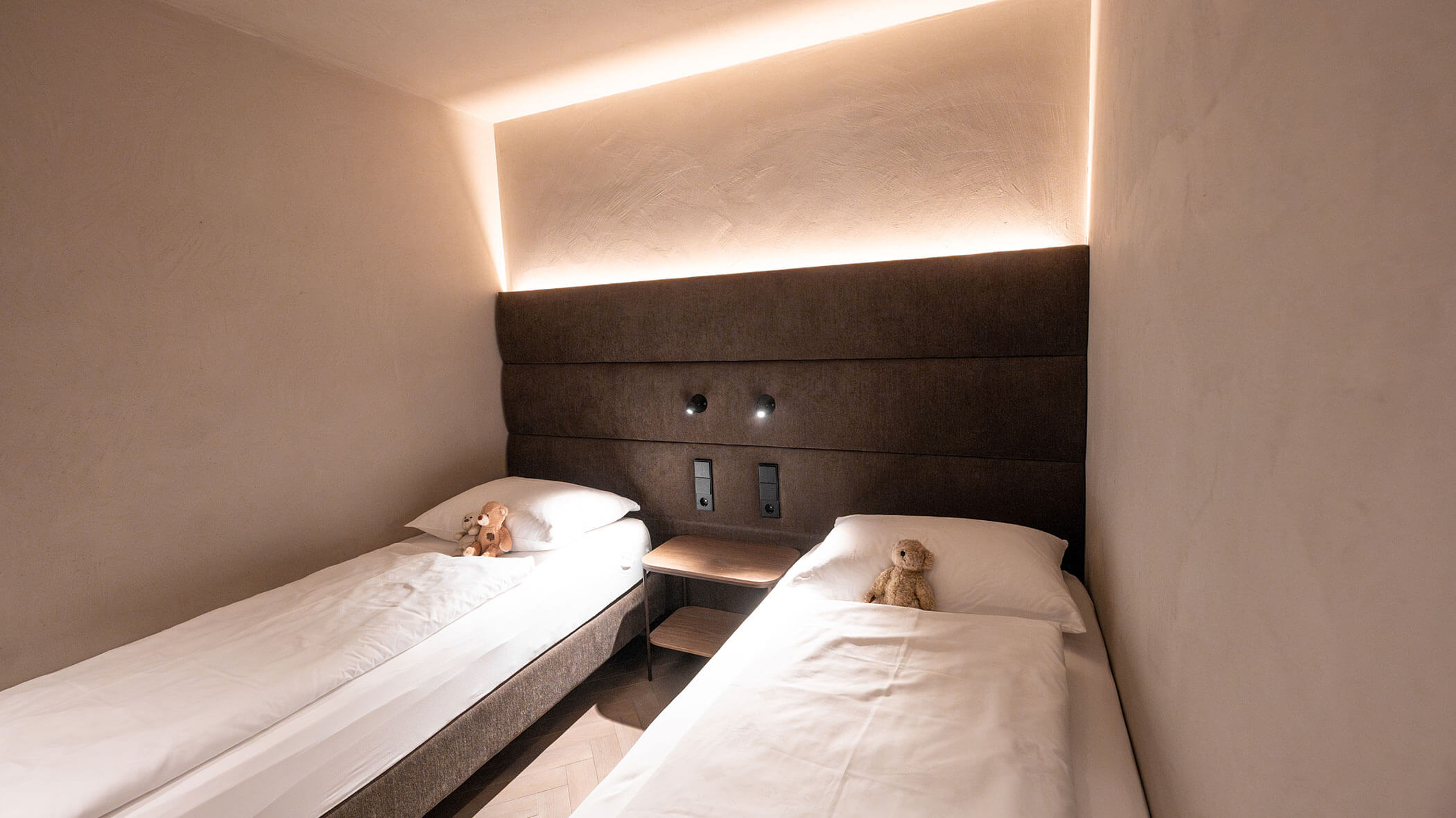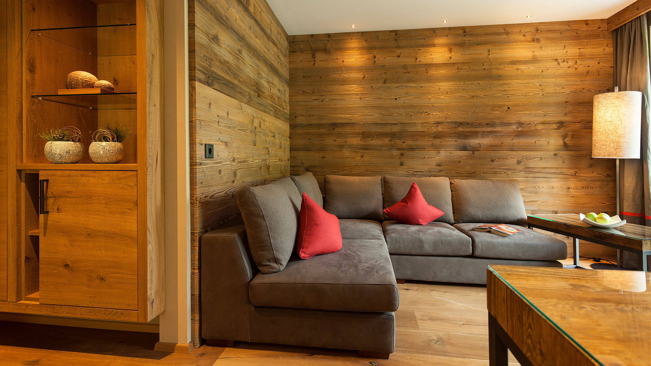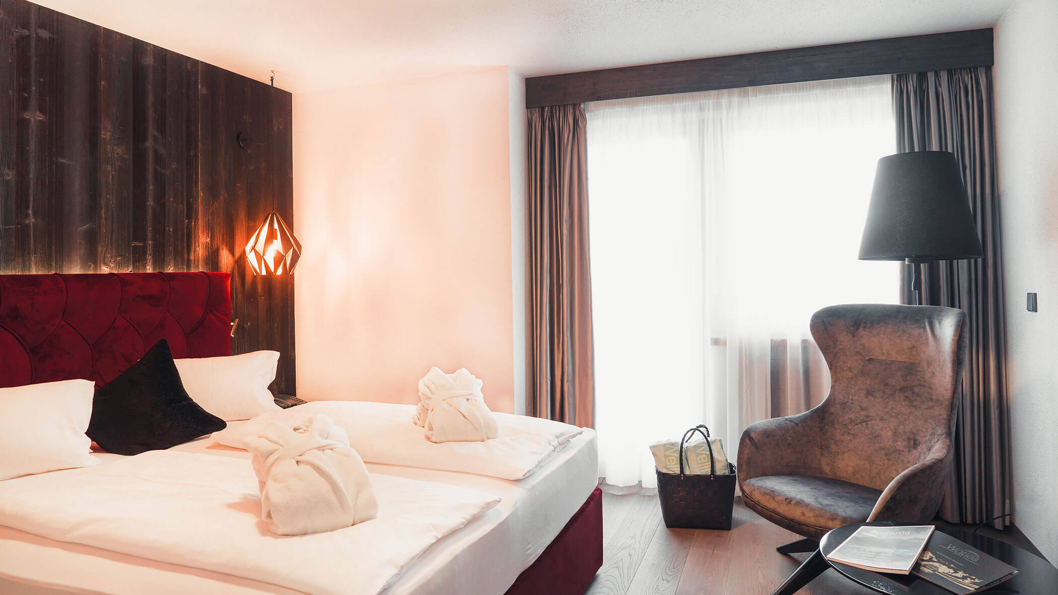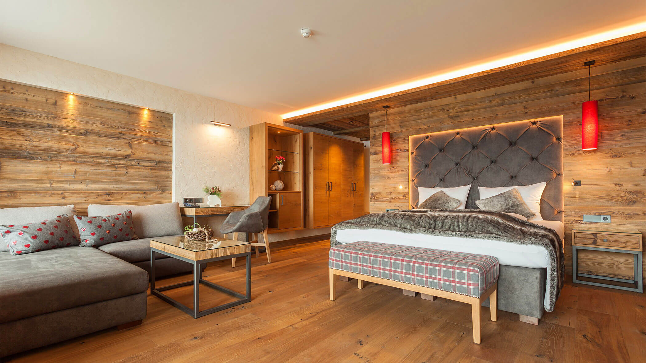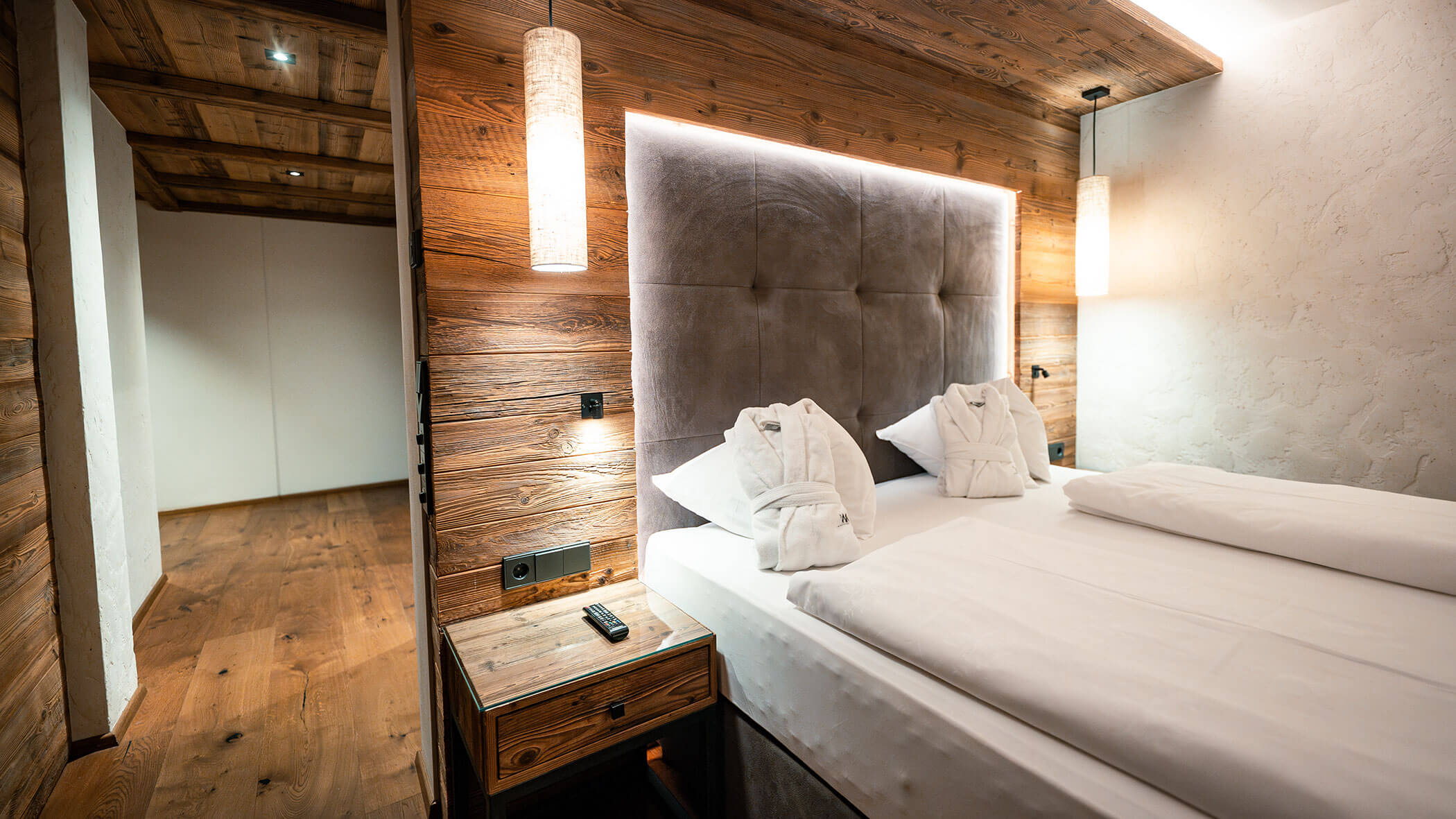 Wir waren in einer sehr komfortablen und geräumigen Junior Suite untergebracht. Als man uns an der Rezeption sagte, dass das Zimmer im Erdgeschoss sei, waren wir enttäuscht, aber als wir die Tür öffneten, erlebten wir eine wunderbare Überraschung, denn stattdessen befand sich der große Balkon an der Bergwand, mit Blick auf das Tal und die gegenüberliegenden Berge. Atemberaubende Aussicht.