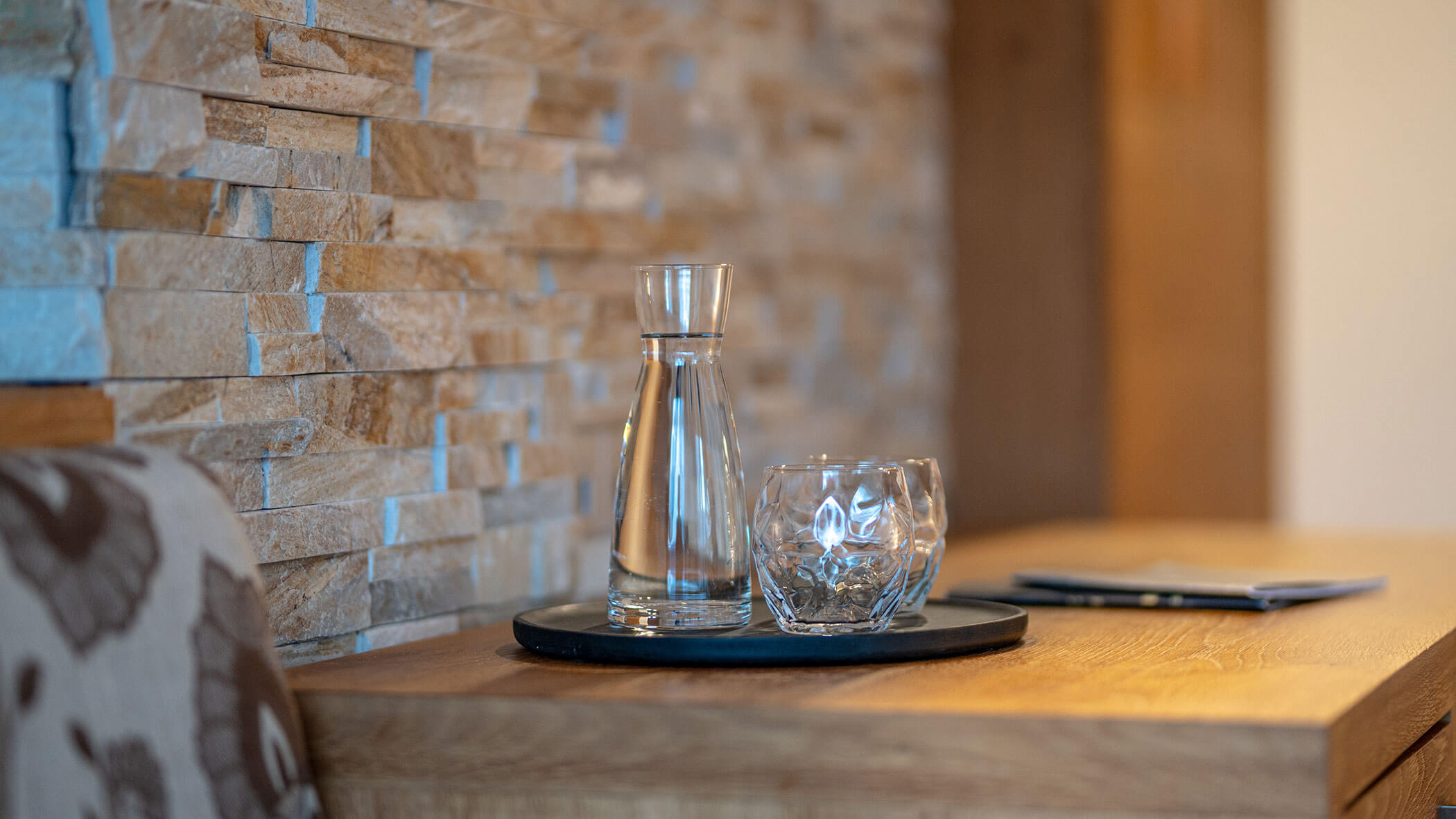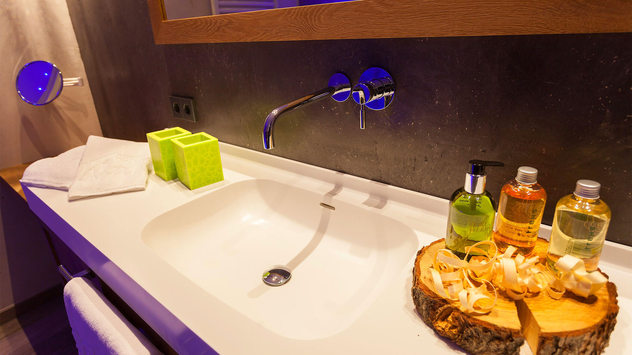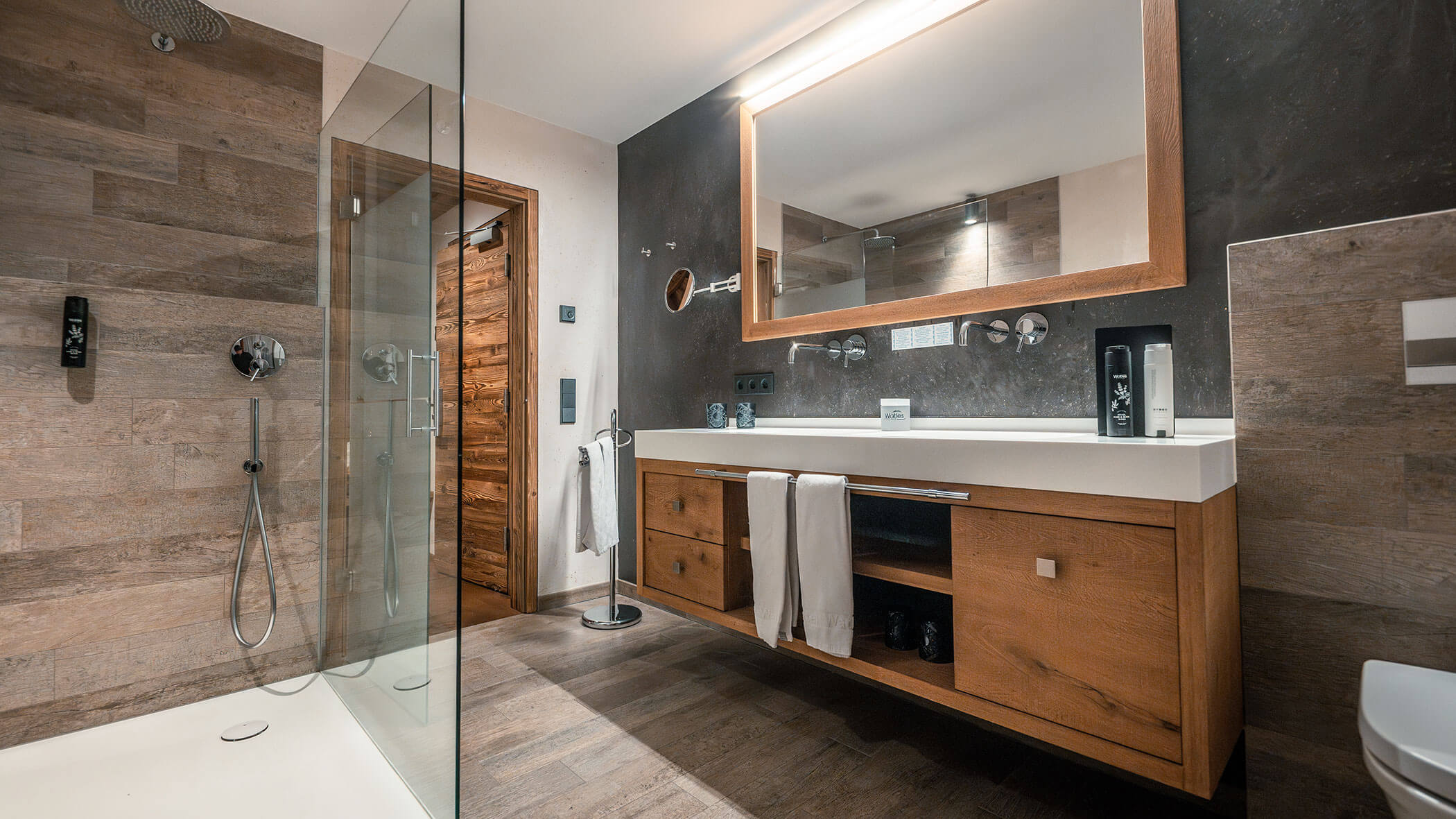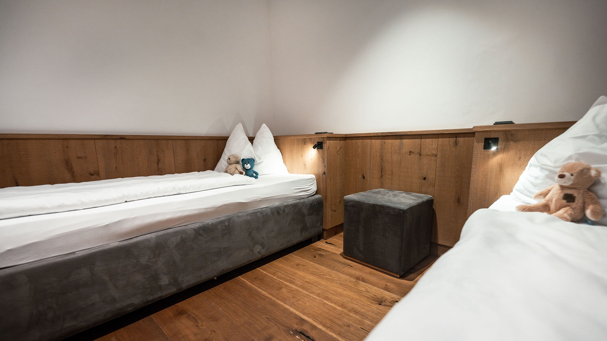Wir waren in einer sehr komfortablen und geräumigen Junior Suite untergebracht. Als man uns an der Rezeption sagte, dass das Zimmer im Erdgeschoss sei, waren wir enttäuscht, aber als wir die Tür öffneten, erlebten wir eine wunderbare Überraschung, denn stattdessen befand sich der große Balkon an der Bergwand, mit Blick auf das Tal und die gegenüberliegenden Berge. Atemberaubende Aussicht.