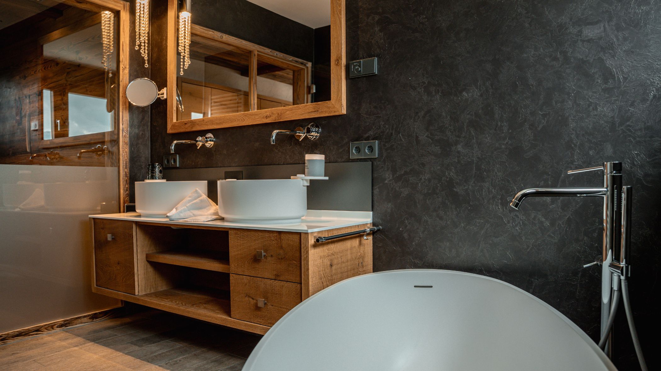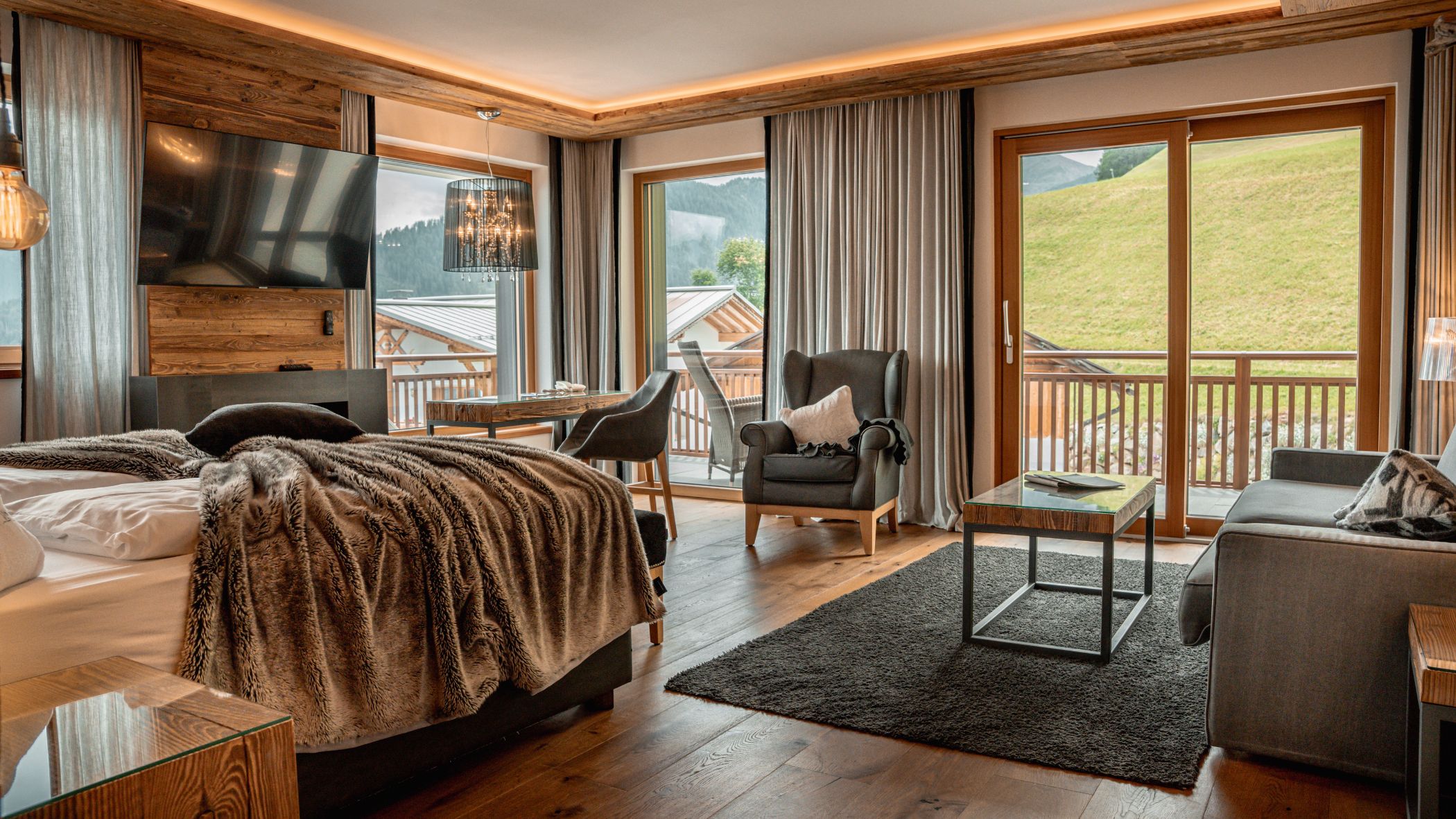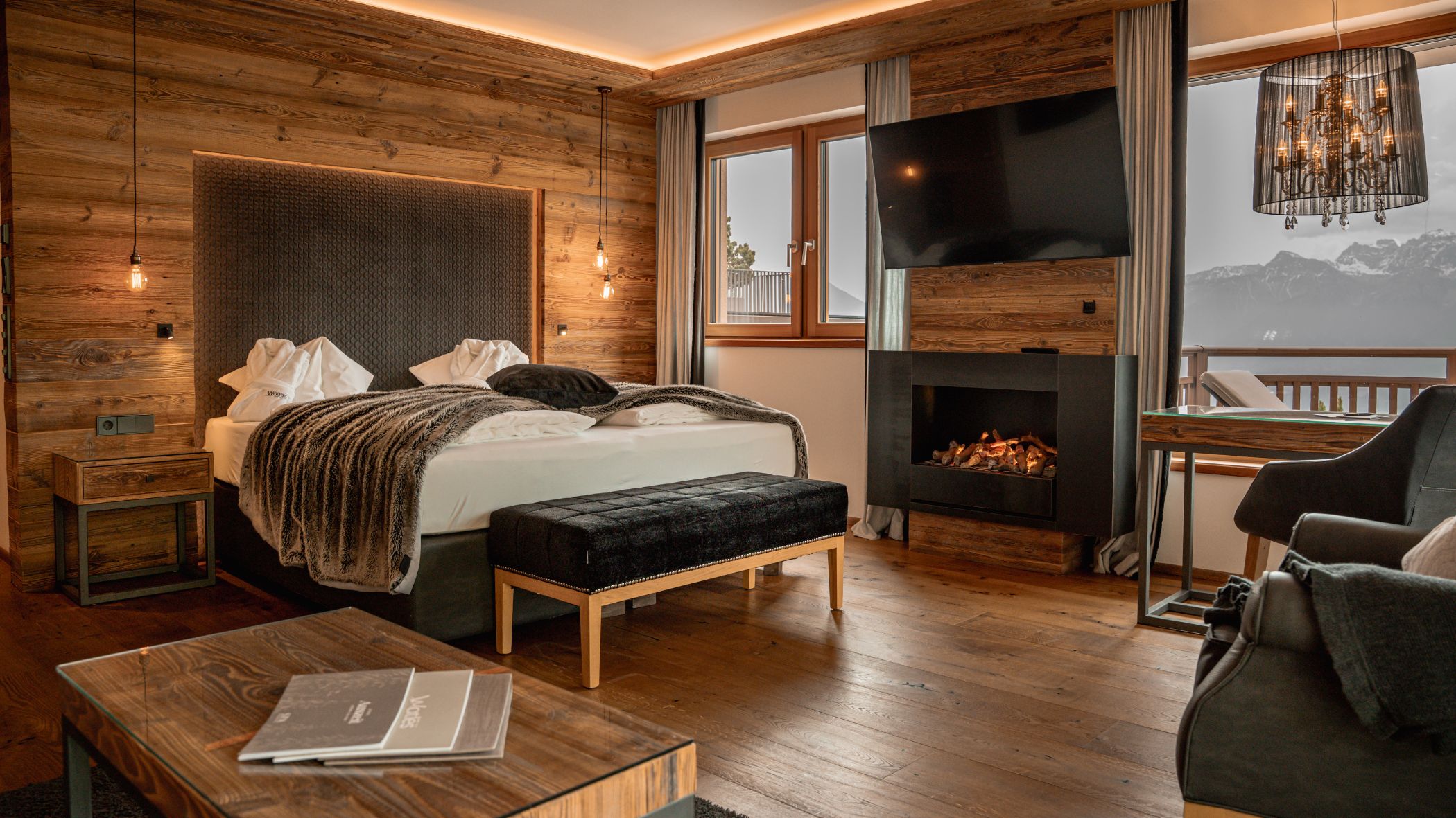 We stayed in a very comfortable and spacious Junior Suite. When we were told at reception that the room was on the ground floor, we were a little disappointed. But the moment we opened the door, we were met with a wonderful surprise: instead of street level, we found ourselves on a large balcony on the mountainside, overlooking the valley and the opposite peaks. A breathtaking view.